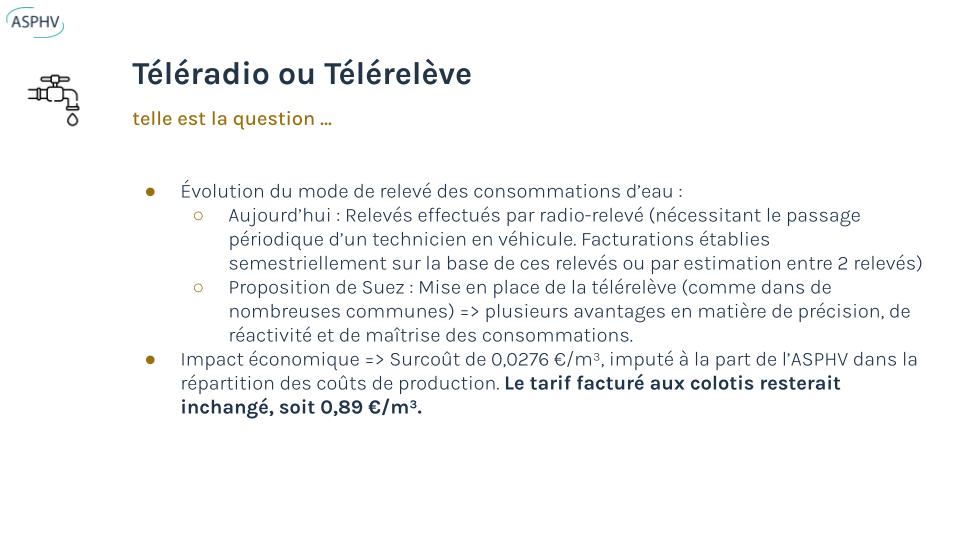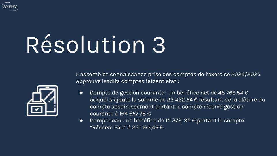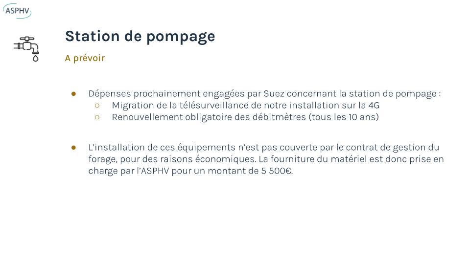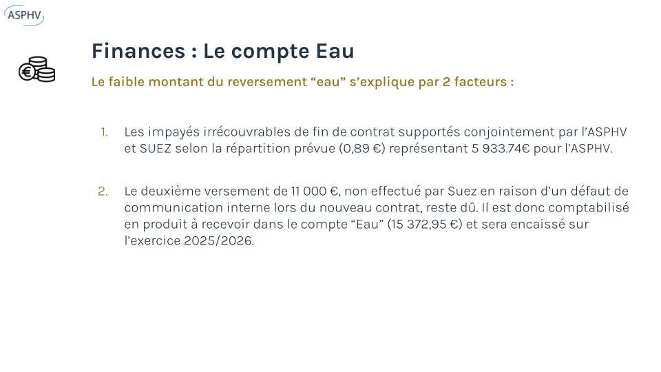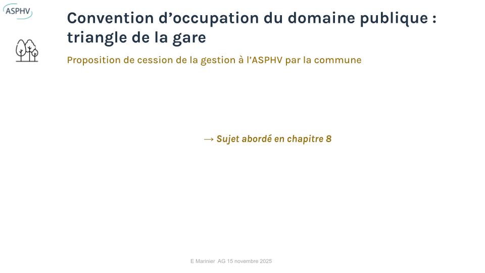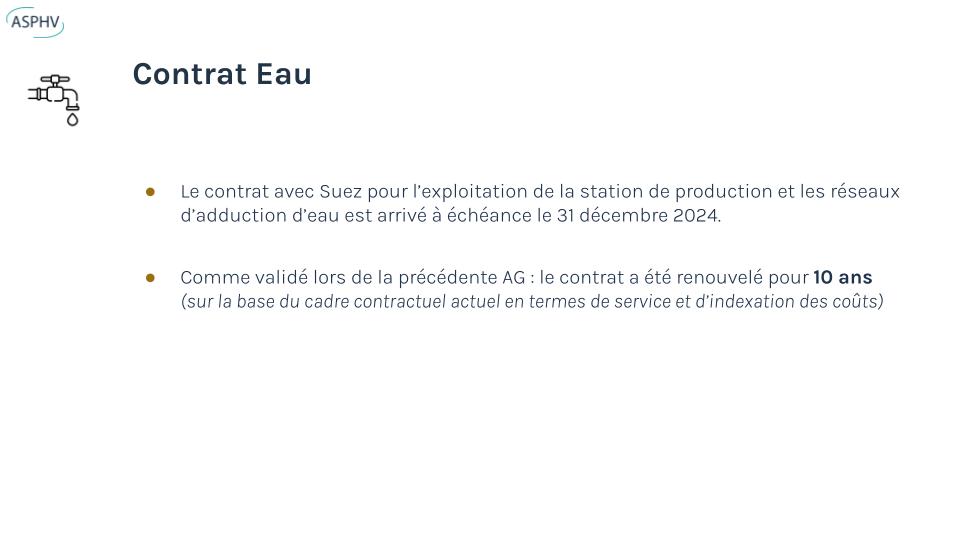 Enfin, le budget 2025/2026 a été adopté (97%), ainsi que l’avenant incluant la télérelève du système d’eau et la convention pour la gestion du triangle de la gare.