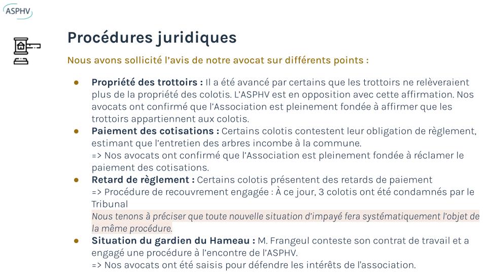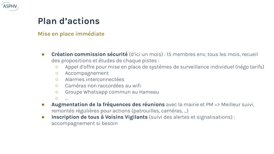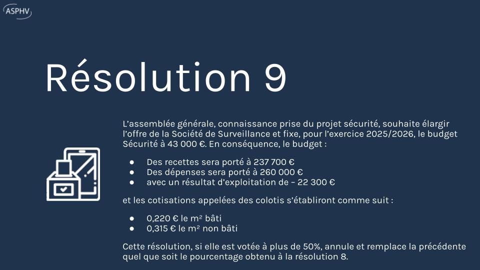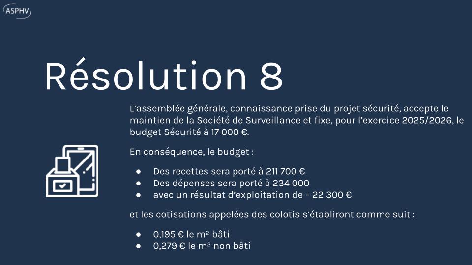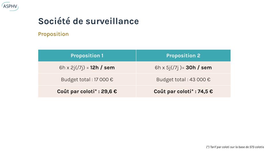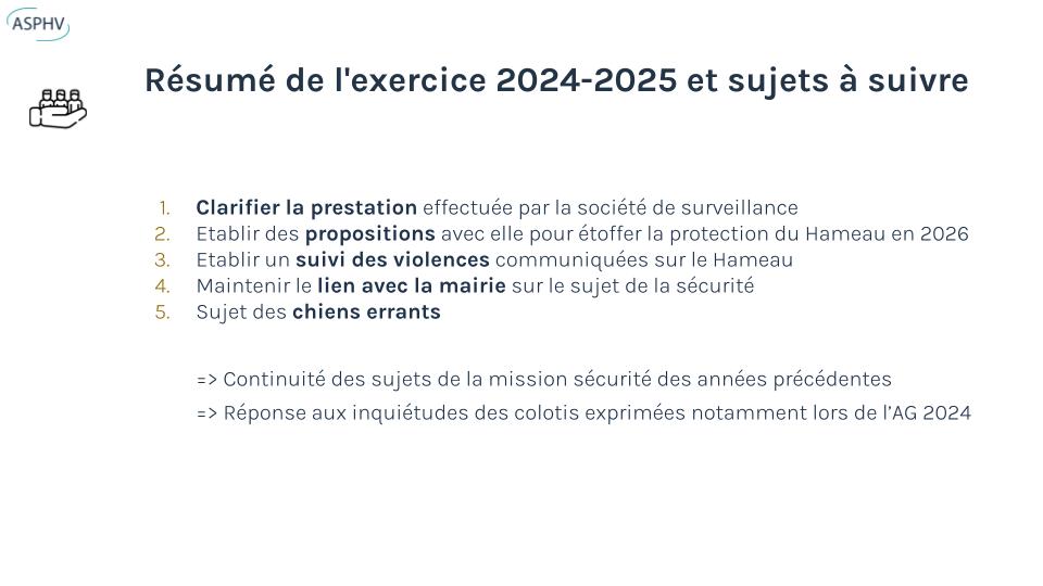 Les propriétaires ont voté l’augmentation des heures de surveillance (30 h/semaine, 43 000 €) afin de renforcer la sécurité du Hameau.