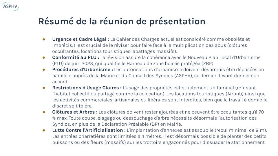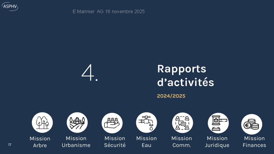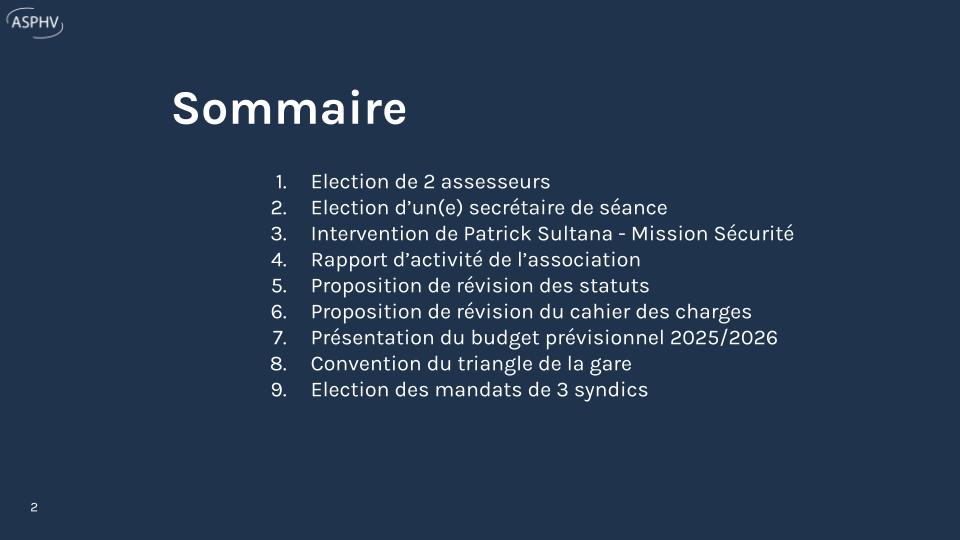 L’Assemblée Générale (AG) de l’ASPHV s’est tenue le 15 novembre 2025, abordant sécurité, urbanisme et budget.